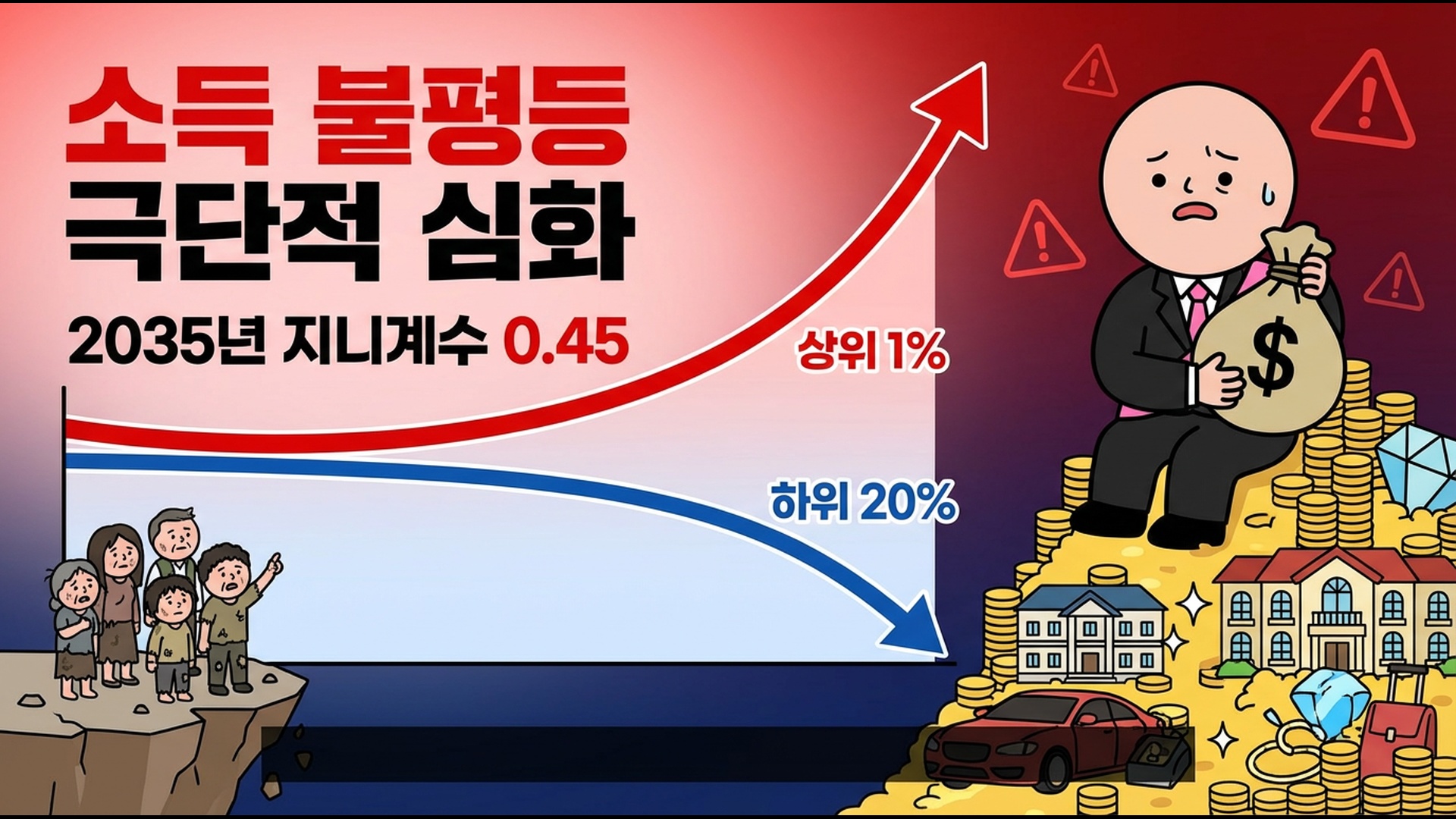 - 별다른 정책 개입이 없을 경우 2035년 한국의 지니계수는 0.45